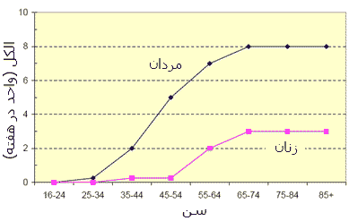 يان وايت و ديگران (+) ميزان بهينهي مصرف الكل را بر مردان و زنان در سنين گوناگون برآورد كردهاند. خلاصهاي از روش و يافتههاي آنان (كه نتيجهگيريهاي خودم را قاطيش كردهام):